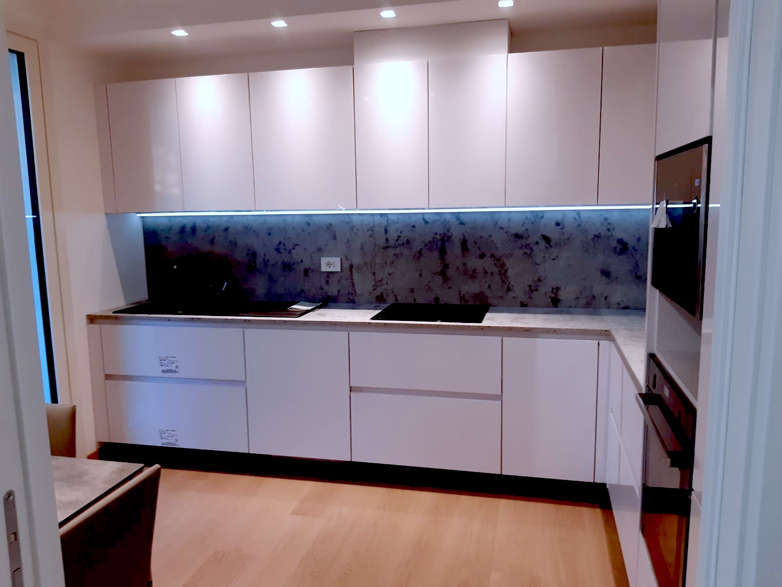 Cucina laccata lucida con top in quarzo