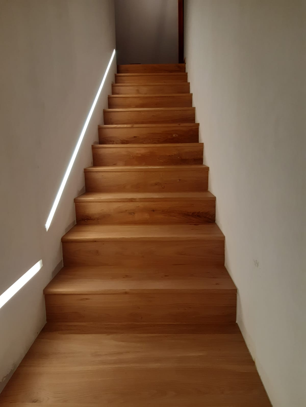 Scala artigianale in rovere massello illuminata a led